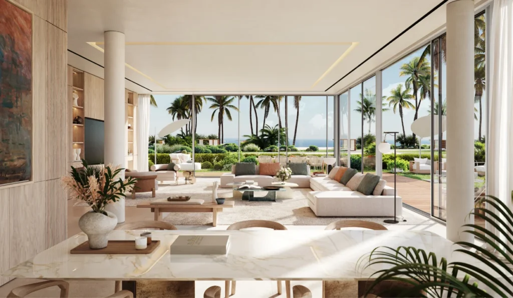 Meticulously curated interior finishes have been used to create a home that radiates both comfort and elegance. Each inviting room has been adorned with refined accents and a harmonious array of finishes, including warm oak or walnut wood, stone, lacquer, and brushed champagne metal. This results in an inviting and elevated ambience that exudes luxury. Your ideal beachfront home awaits you in this spectacular setting. Embrace panoramic sea views on breathtaking balconies and terraces as you gaze out on the horizon or relax indoors in spacious sun-drenched rooms.